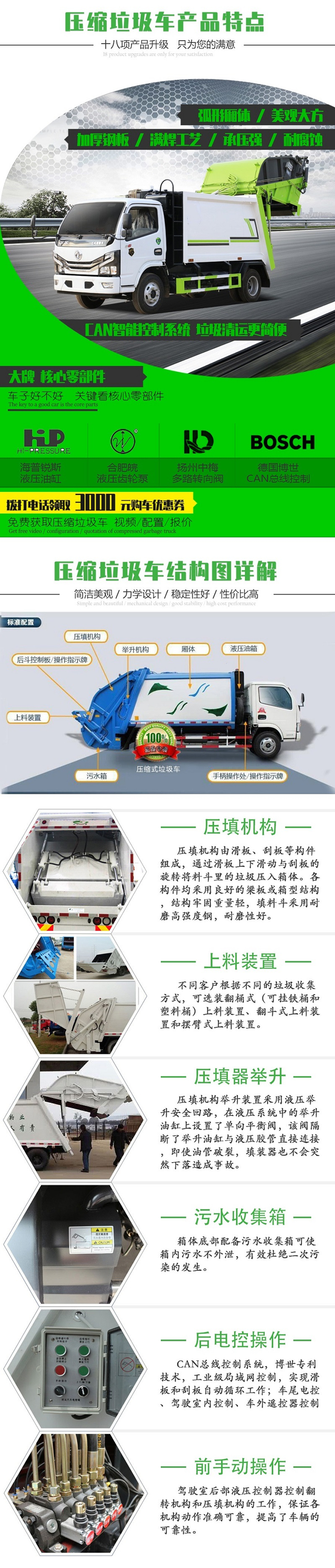 上裝選用Q345高強(qiáng)度錳鋼板制作,廂體容積:14立方米,可裝35立方散裝廢物,大流量液壓泵,大流量手自一體多路換向閥,可編程PLC電控體系帶無線遙控器操作,雙污水廂,雙向緊縮,卸料時(shí)帶一鍵循環(huán)體系,司機(jī)不下車可竣工卸料工作。尾部選裝全密封斗組織.